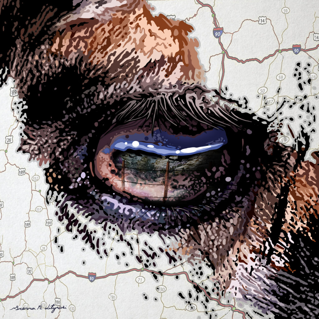 A: My ultimate goal as an artist is to inspire people about agriculture and wildlife, and to distill complex ideas and topics into visuals that are easily understood by many. When someone views my work, I hope to give them an opportunity to see my subject matter through a new lens, and maybe even learn something from it. Drawing from my portfolio, which spans fine art, illustration, and digital design rooted in the landscapes and culture of the American West, I aim to reveal the extraordinary in the ordinary. Whether it’s a wildlife painting, an agricultural or rodeo scene, or digital branding and website design for an agricultural business, each piece is meant to inspire. My work strives not only to educate and inspire, but to tell a story. Whether it’s a detailed illustration or an interactive website, I hope viewers leave with a clearer understanding of the story behind the image—what it represents, why it matters, and how it connects to the American West.