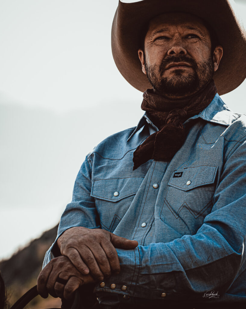 Here stands a generational rancher in his 40s—a man raised in the dust and daylight of the same land his father and grandfather worked before him. With weathered hands and a quiet strength, he embodies the values passed down through generations: hard work, honesty, and a deep respect for the land and livestock.
