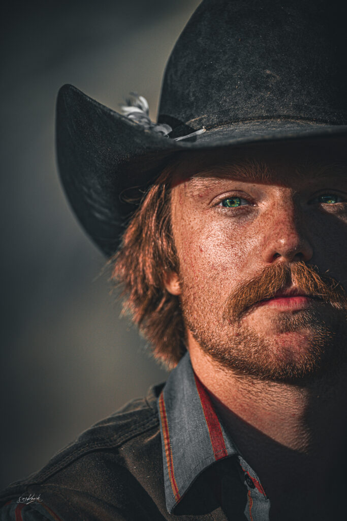 This close-up captures more than just a young cowboy’s face—it reveals the grit, hope, and determination of a 20-something chasing his dream the hard and honest way. Raised on stories and saddle leather, he’s forging his own path as a cattle rancher, one early morning and late night at a time.