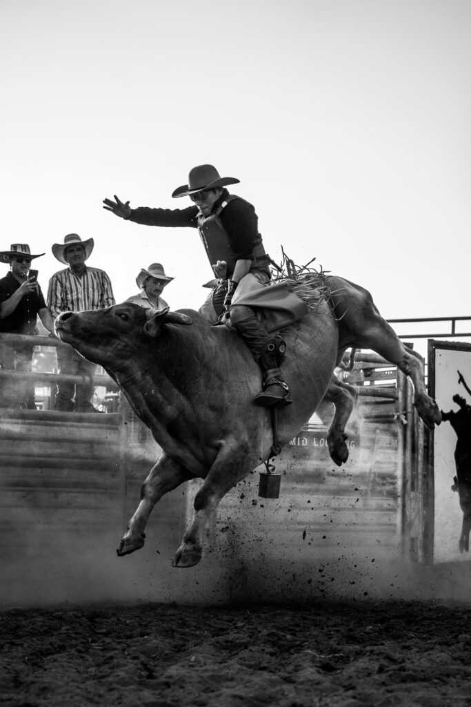 I figured if I was going to go out there, I wanted to document some wildlife while in Yellowstone. In the meantime, the Instagram algorithm presented me with one of Kelsen Jones’ reels of a bull bucking in slow motion. That sold me on getting the camera. I wanted to be able to create just that! So before my trip, I bought my camera in May of 2024, went to the local rodeo on June 1st, and tried filming it. I posted some clips and videos online, and it caught the attention of the producers. A few weeks later, I was able to obtain a media pass for the Cody Nite Rodeo while I was out in Wyoming, shot some video, and posted it online, and it has since snowballed from there. Each Rodeo led to the next one, and I just kept documenting my experience with it. I didn’t start taking photos until October of last year, and have found that to be a new challenge to try and learn both.